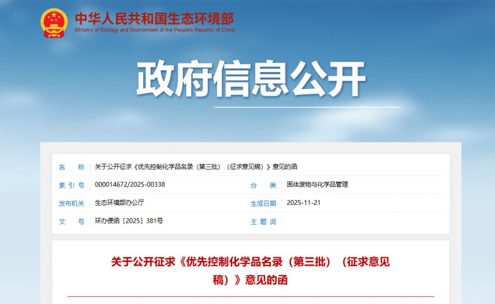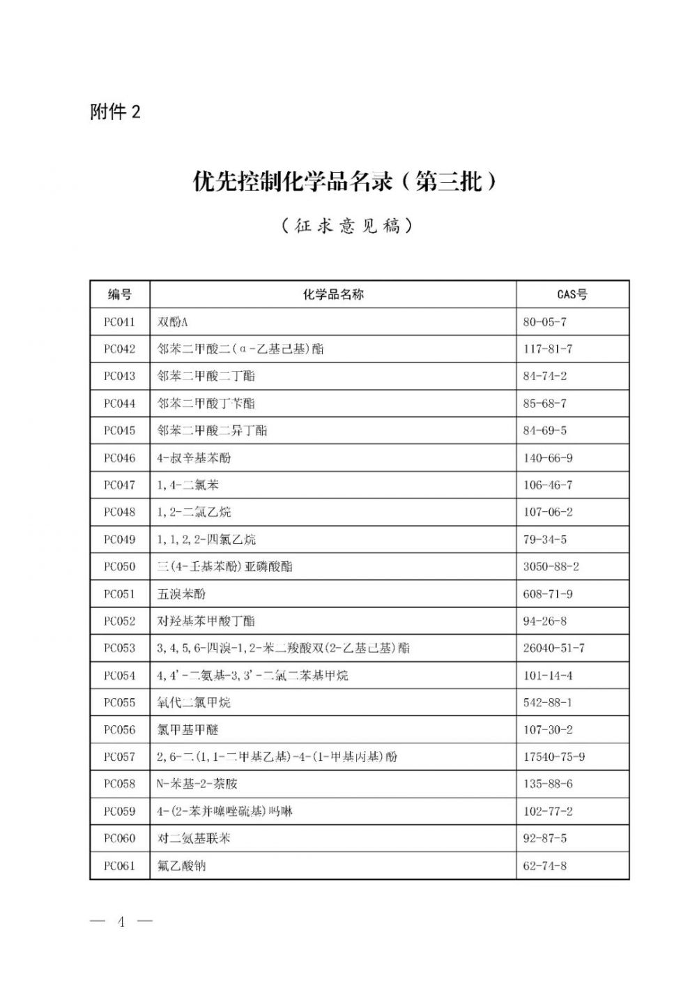生态环境部|优先控制化学品名录(第三批)(征求意见稿)